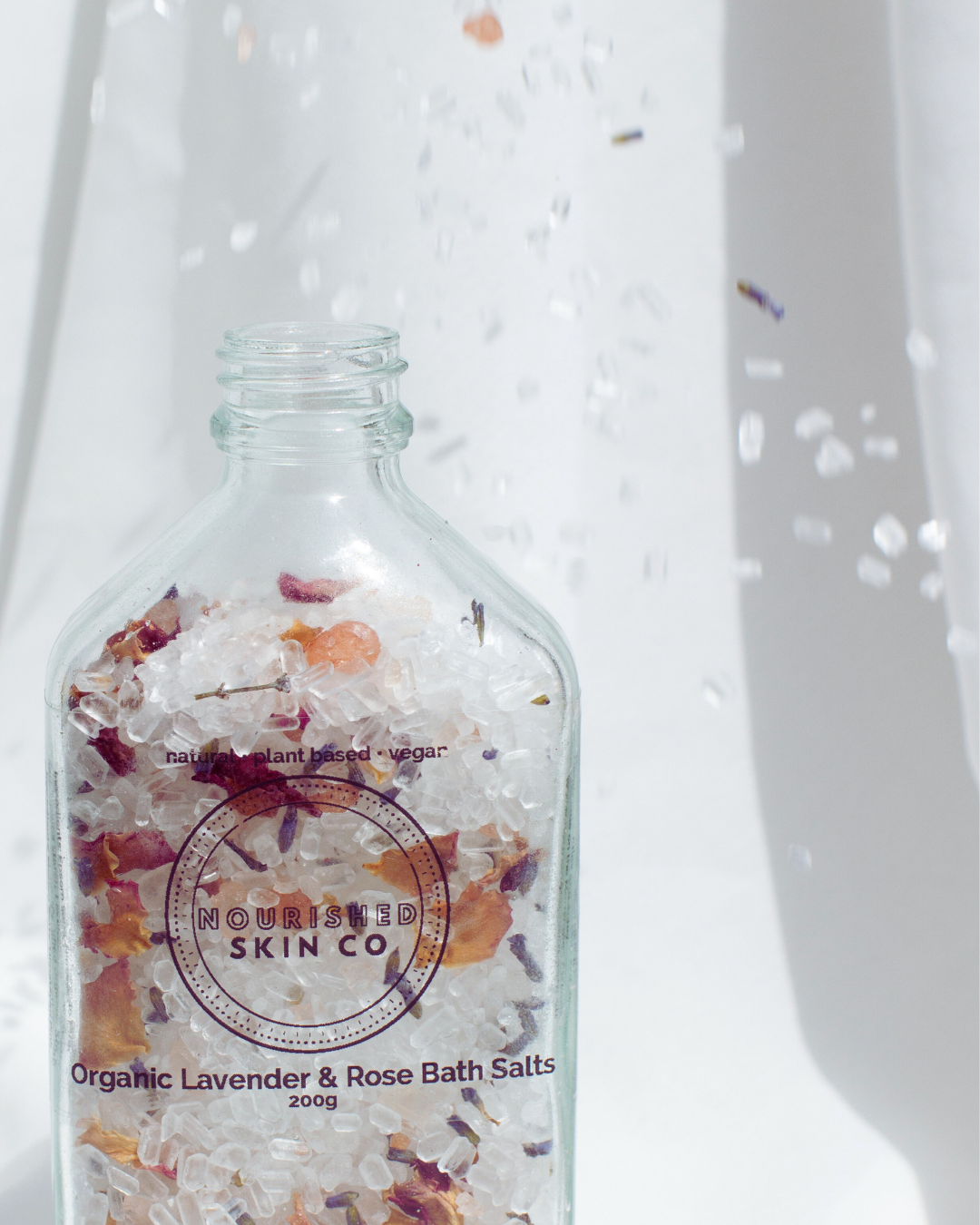 Sink into deep relaxation with our Organic Lavender & Rose Luxe Bath Salts, a soothing blend designed to relieve muscle tension, calm anxious thoughts, and leave your skin soft, smooth and replenished.